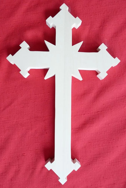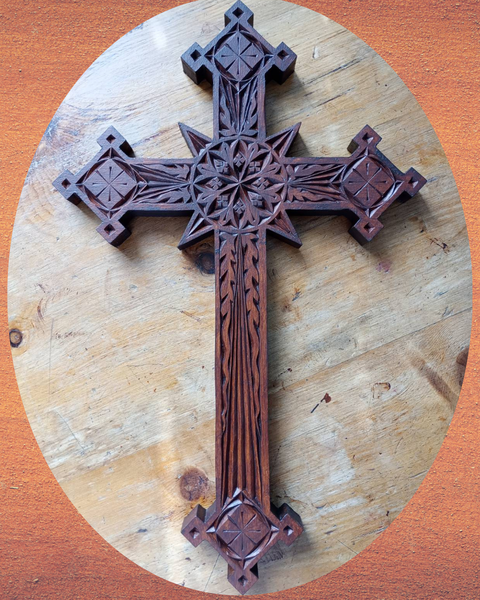 This is beautiful! The design works well with the Barton rosette. The squares on each end of the Gothic cross look perfectly symmetrical. The stain is a nice rich color, too.