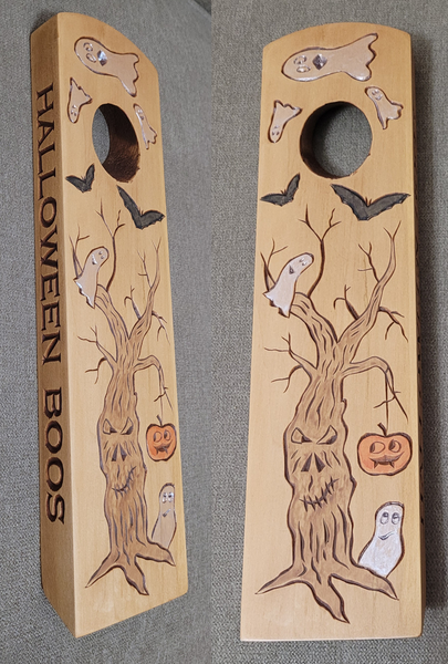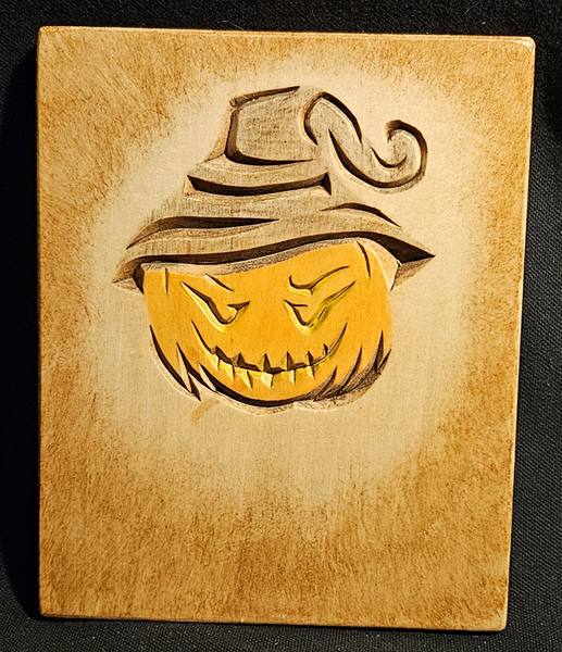 I applied the same finishing touches of three coats of spray matte acrylic and gel stain on my ‘Trick Or Treat’ carving, and the results really made the details pop!