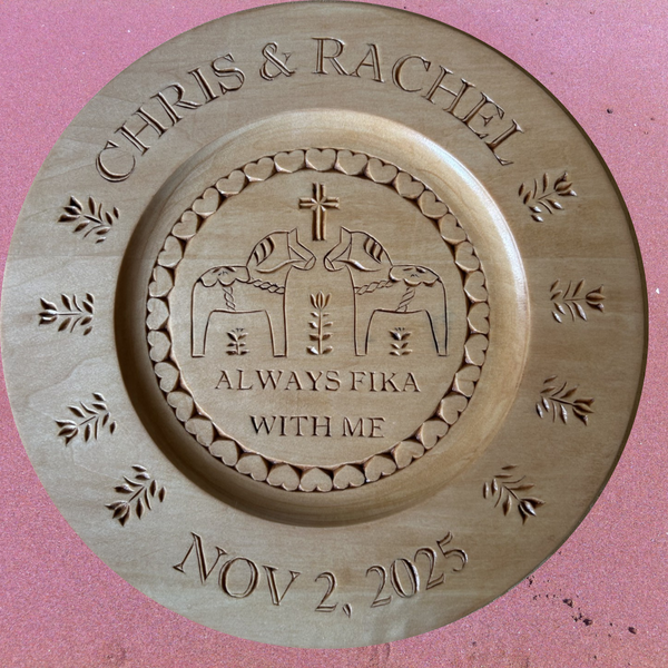 I'm excited to share with you the wedding plate I carved for my daughter and her new husband. If anyone is curious the word Fika is a swedish for coffee break. It is always shared in community. Thank you Troy for all your encouragement through our