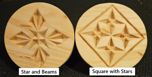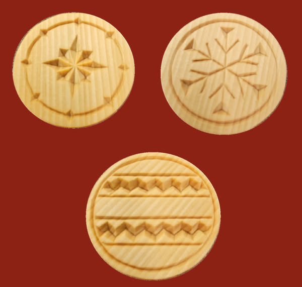 Each Cookie Mold consists of a 2.75″ (approx.) circle of 0.5″ basswood and a 1.25″ ball knob with a flat bottom. The cookie mold will come as two separate pieces to make carving easier. Once the pattern has been carved, just glue the