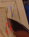 So, what went wrong? The start of my cut was with the grain(grain direction = blue line), but it began to go against the grain right at the curve.